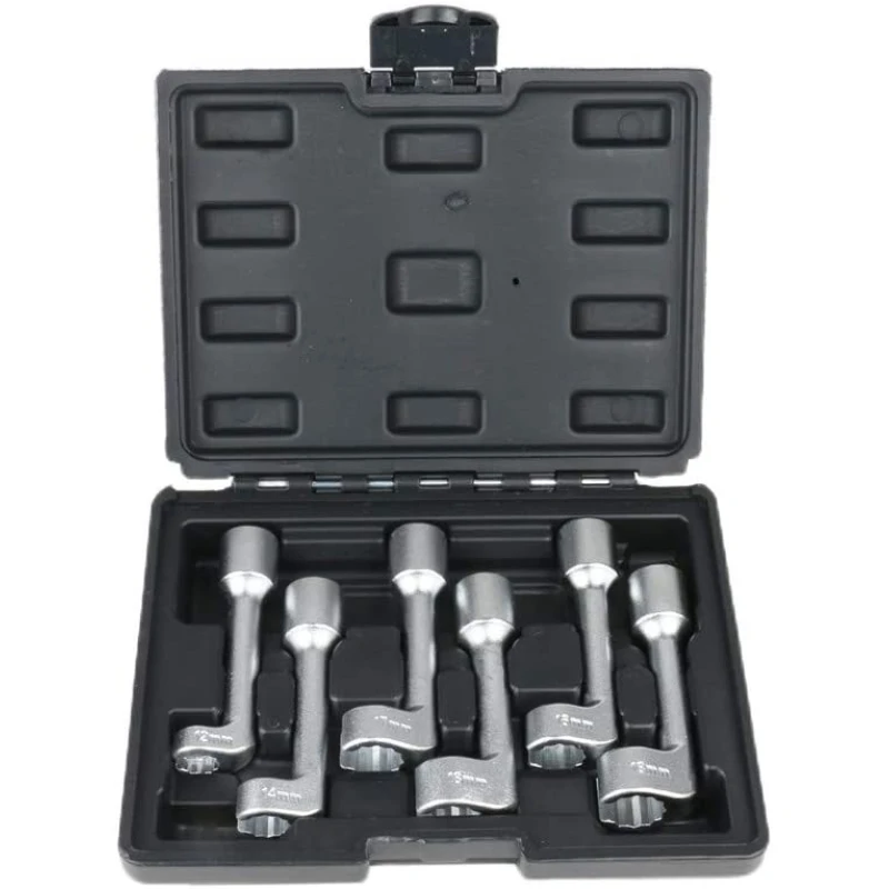 Ce jeu est spécialement conçu pour desserrer et serrer les écrous et les boulons dans les espaces réduits, en particulier sur les raccords d’injecteurs de carburant. Sa conception précise permet de s’adapter exactement à différents types de lignes de moteur diesel, facilitant le démontage des conduites d’injecteurs sur la plupart des moteurs diesel.