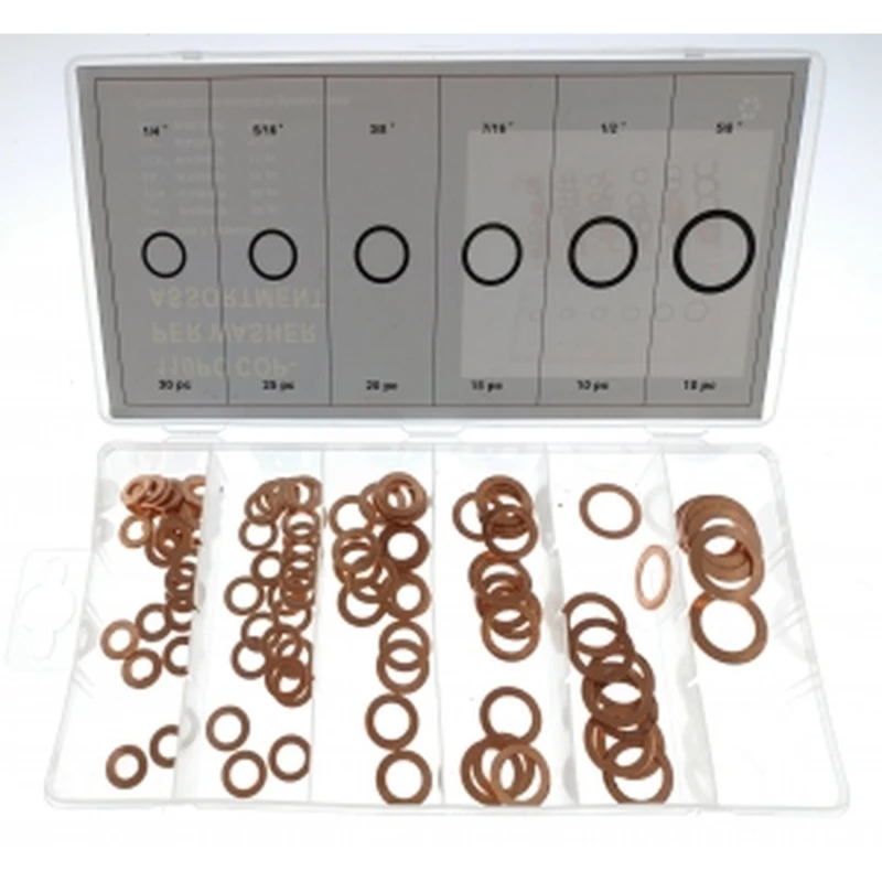 - Contient 110 joints en cuivre en 6 tailles : 30 pièces de 6mm (1/4"), 25 pièces de 8mm (5/16"), 20 pièces de 10mm (3/8"), 15 pièces de 11mm (7/16"), 10 pièces de 12mm (1/2"), et 10 pièces de 16mm (5/8").