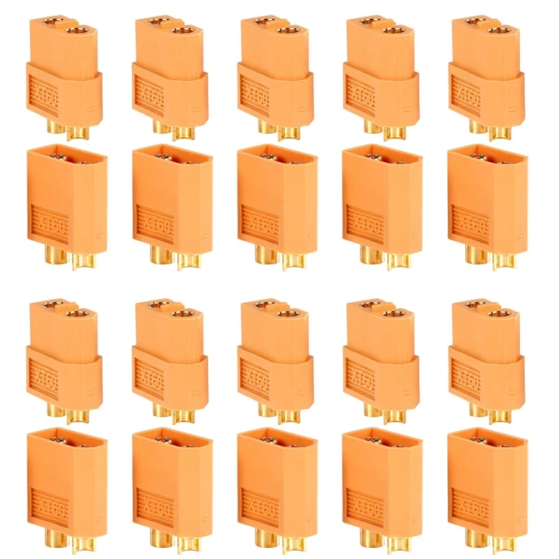 - Pack de 20 connecteurs XT60 : 10 femelles + 10 mâles