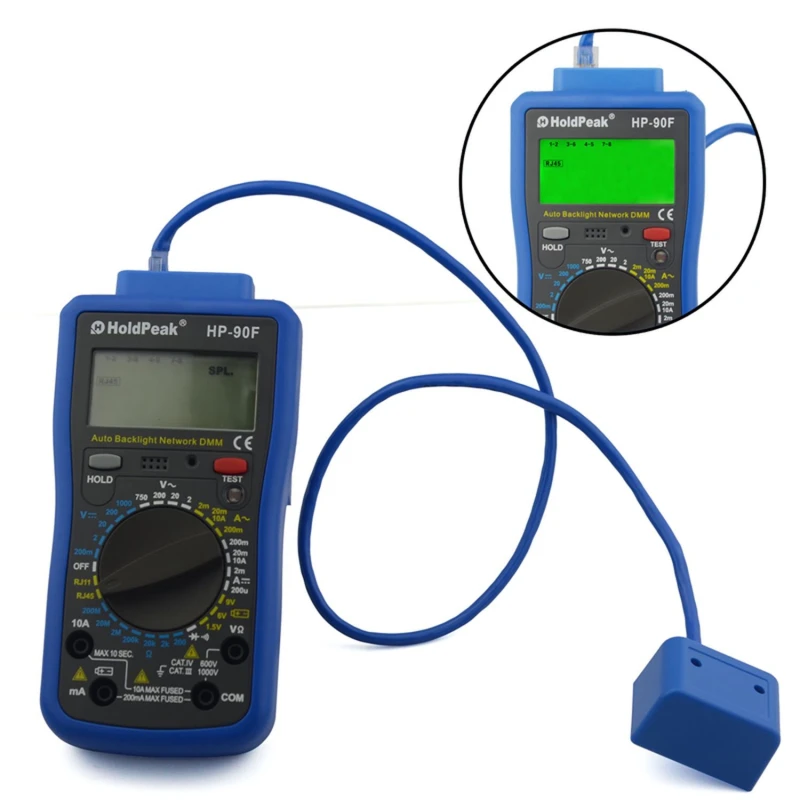 Multimètre numérique HoldPeak HP-90F avec test RJ11 et RJ45