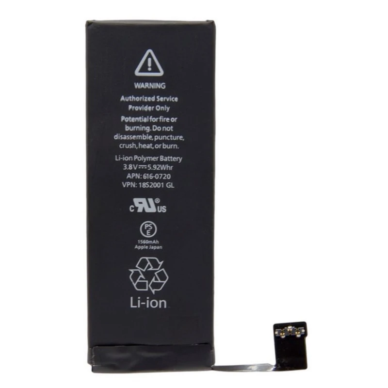 The battery is a lithium-ion polymer type, with a nominal capacity of 1560 mAh at 3.8 V. Its dimensions and weight are equivalent to the original factory-fitted battery in the iPhone 5C. The expected performance is similar, offering comparable performance to the OEM component.
